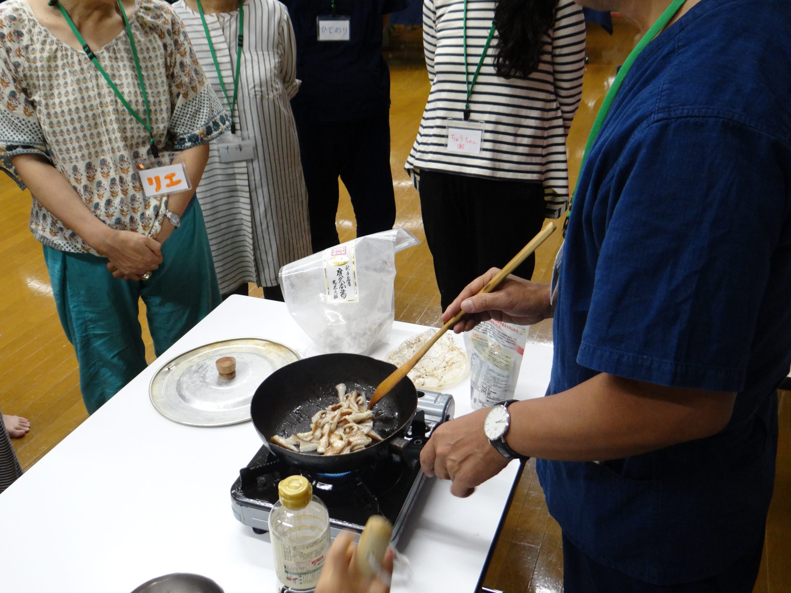 - 時空の杜で採れたシイタケを炒めます