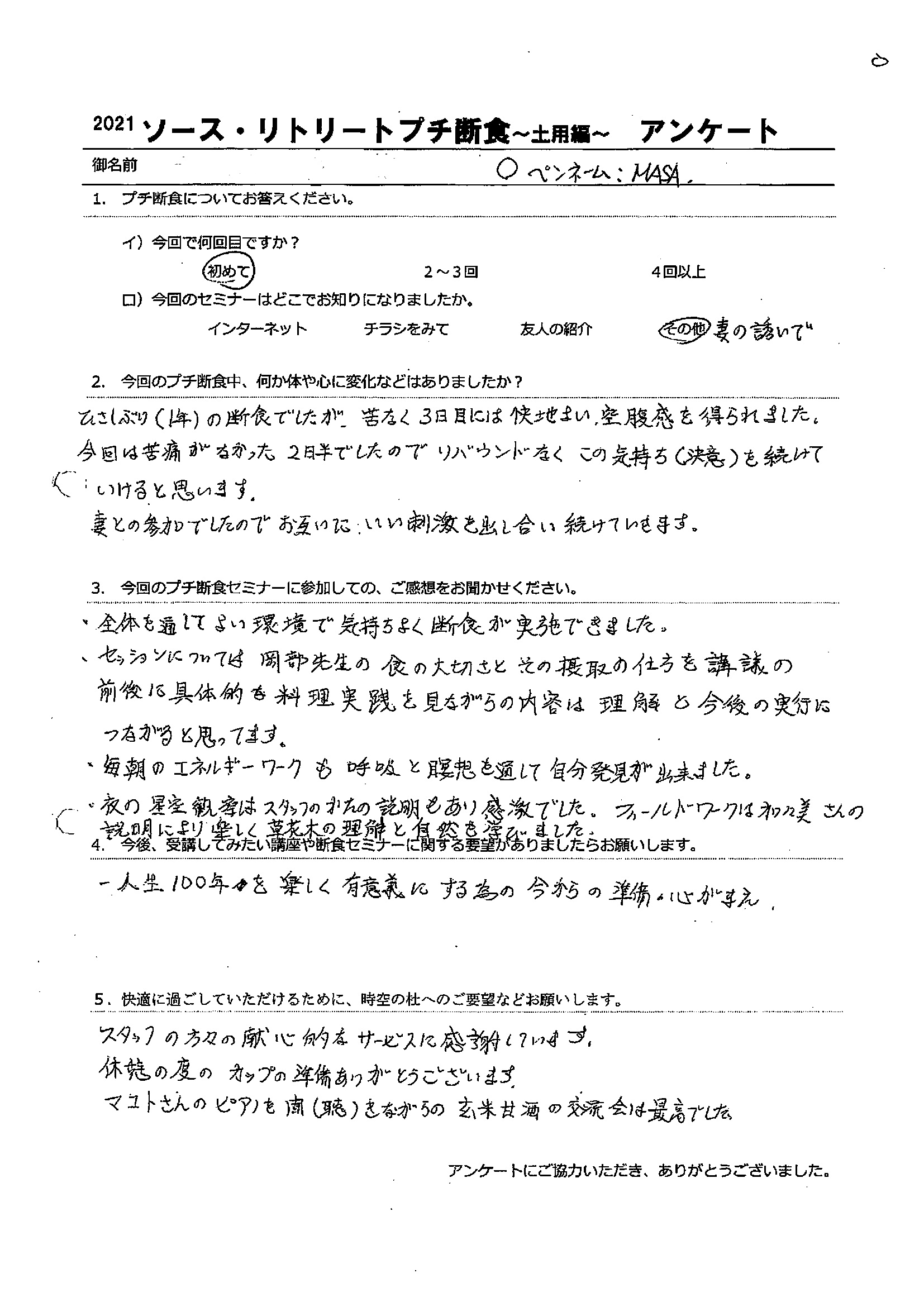 無事全員到着し、プチ断食が始まりました。