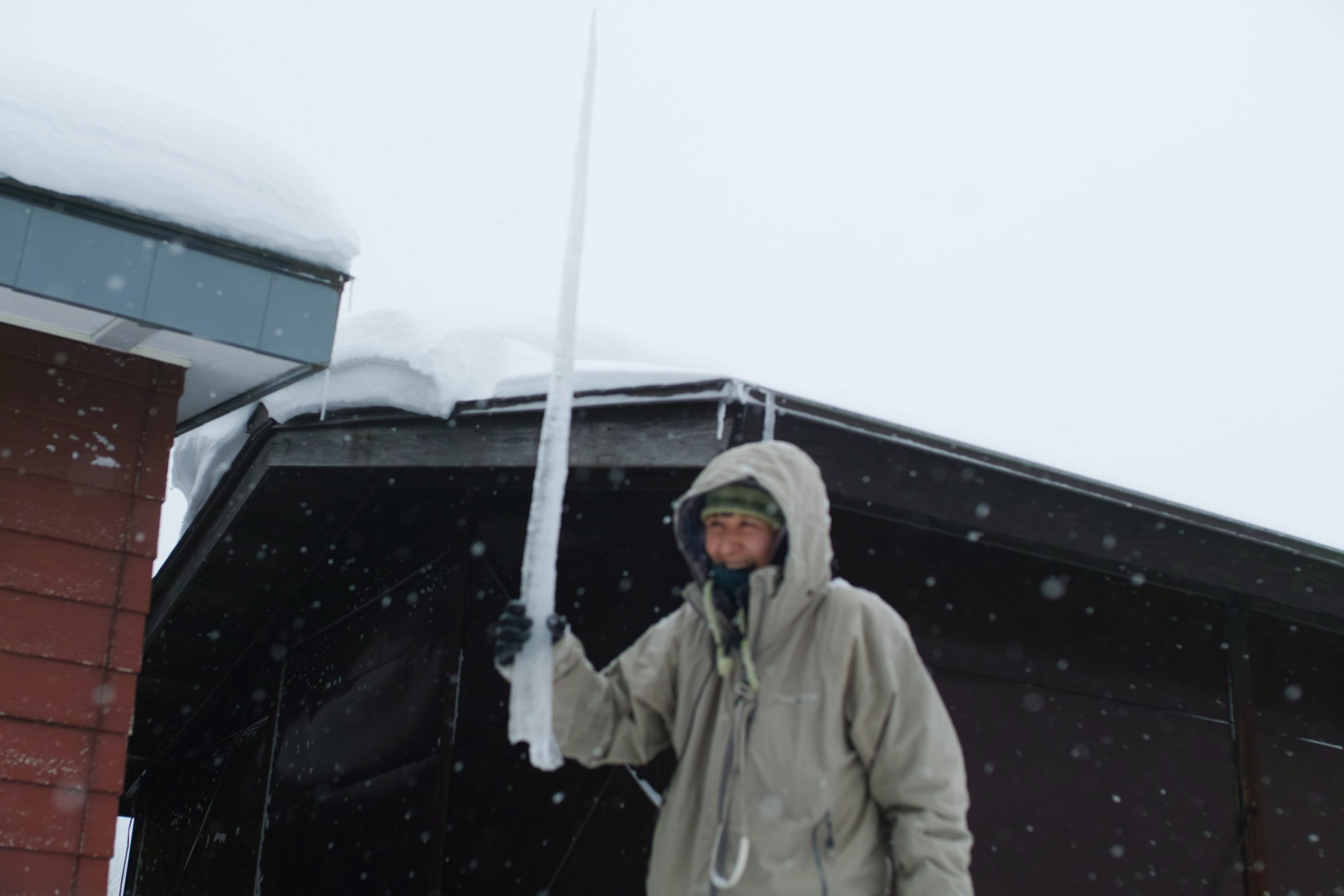 - 屋根についていたつららをもぎました。剣みたいで、思わず子供のようにはしゃぎます。