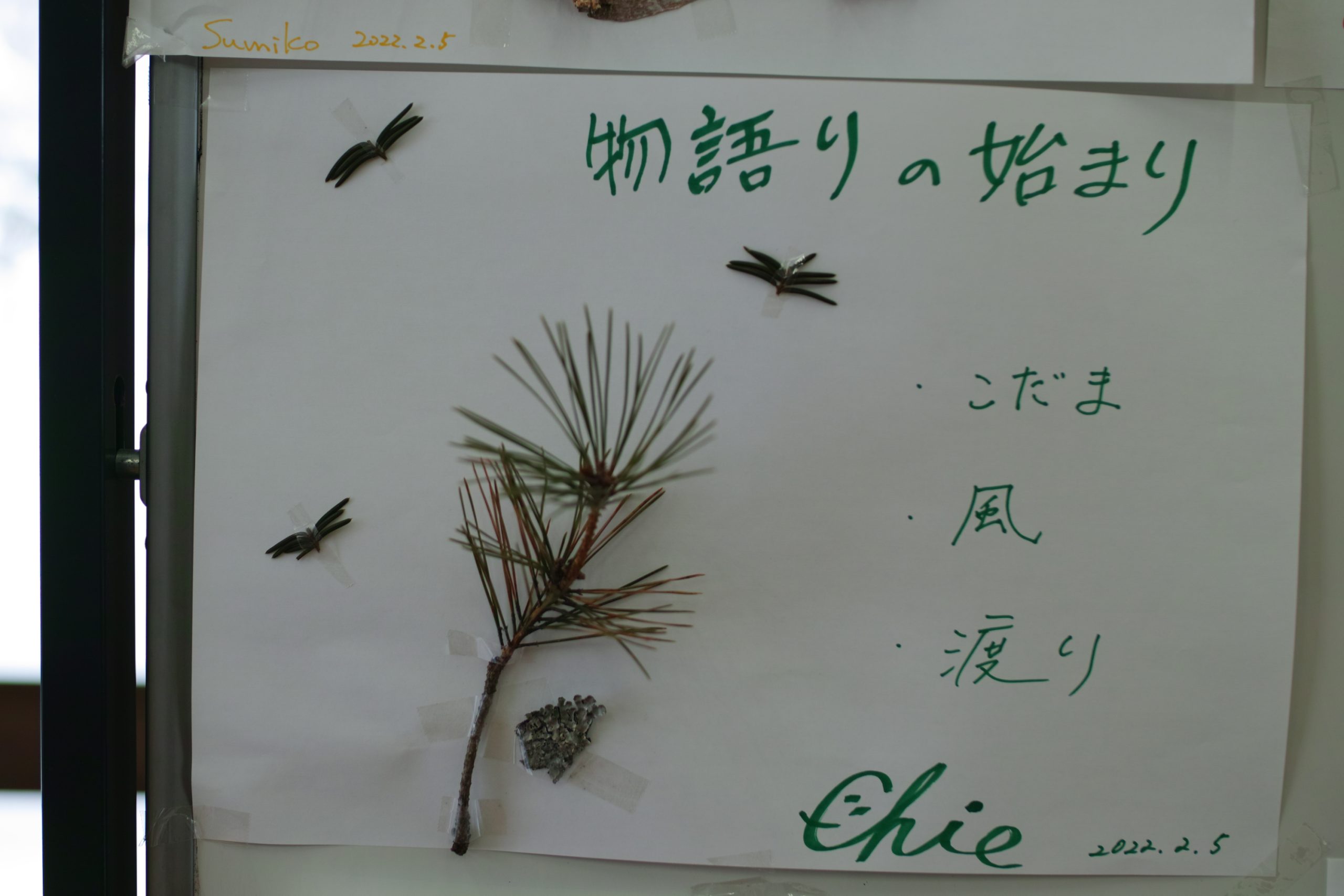 - 拾ってきものを好きにはりつけ、夢をテーマに卒去で話を作るワークです。