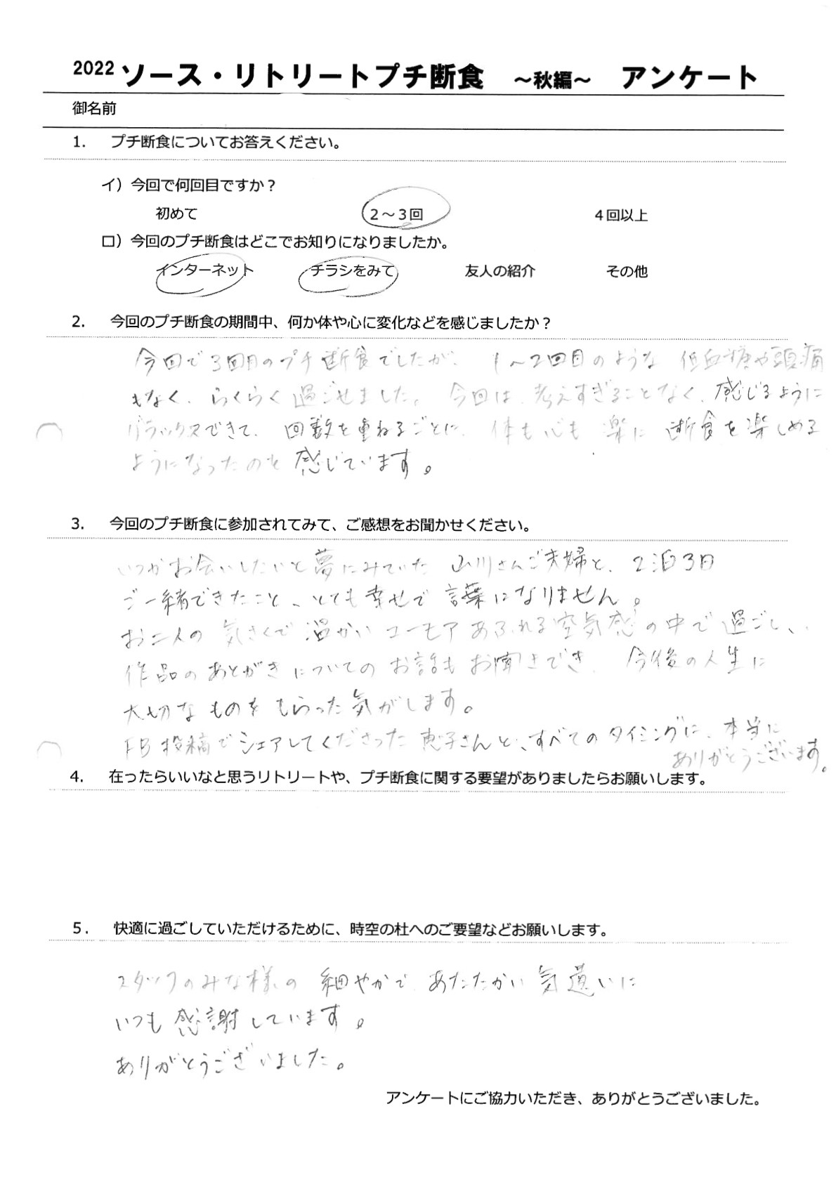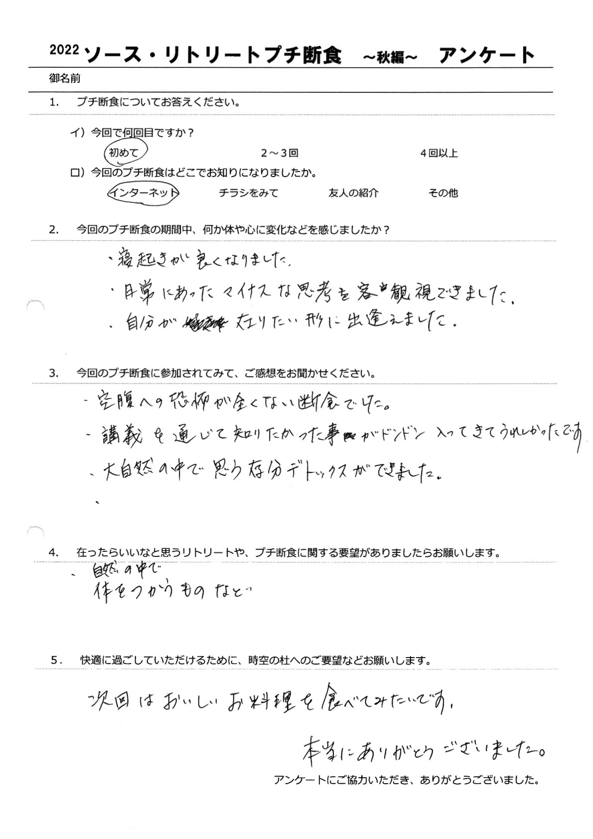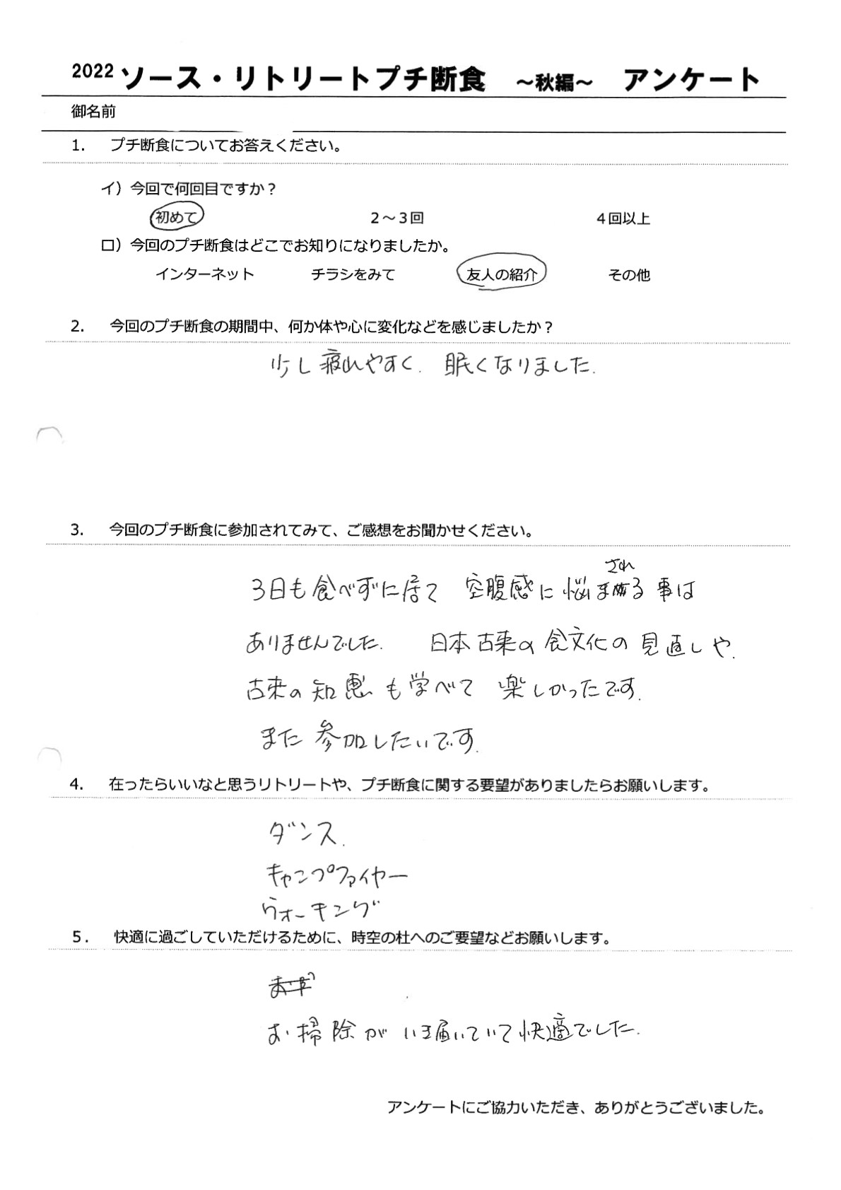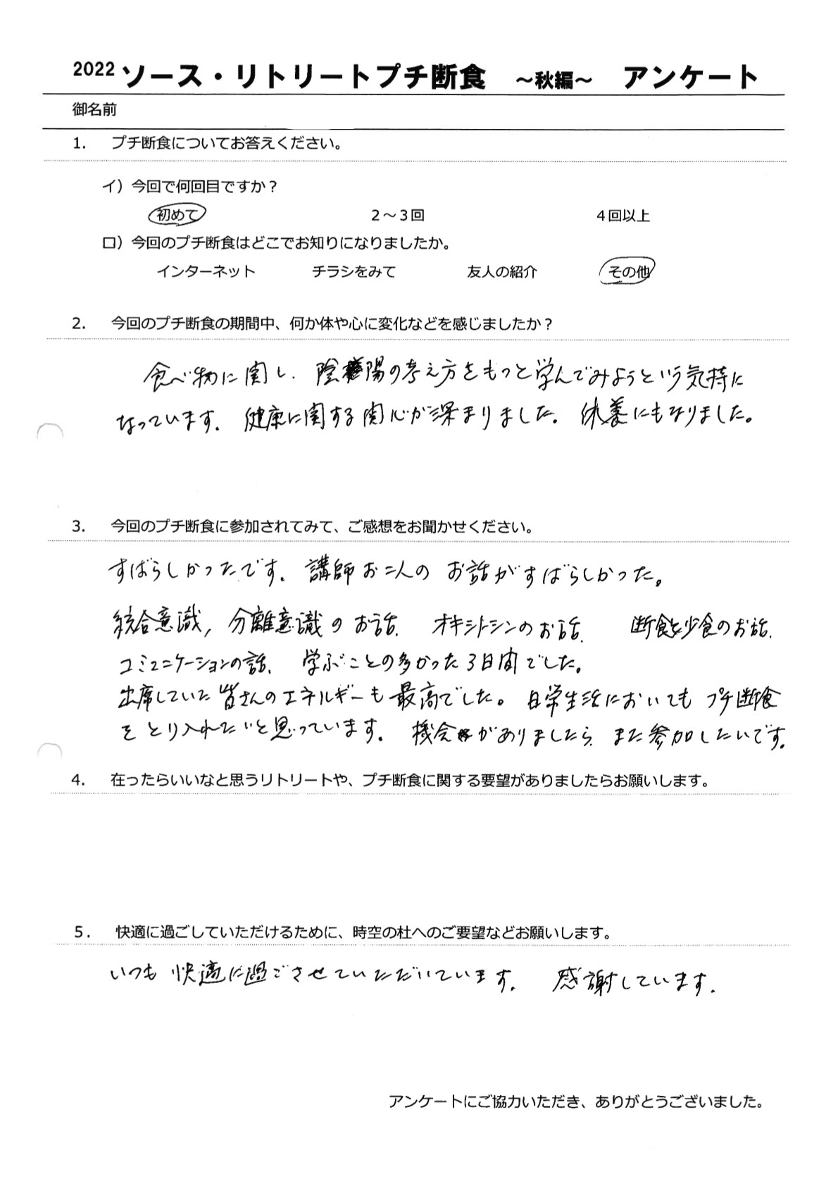 【食べない幸せ・楽しい プチ断食 】9月ご参加ありがとうございました