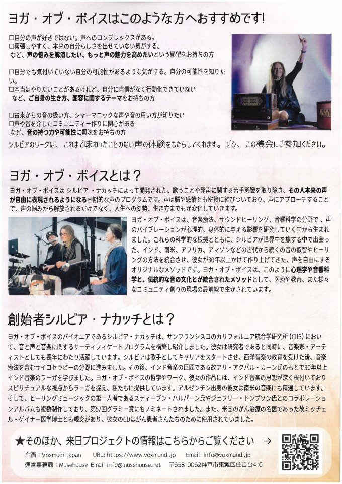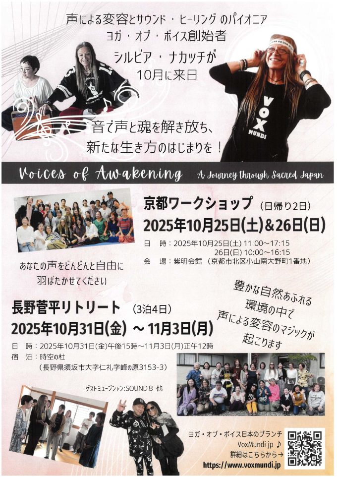 ヨガ・オブ・ヴォイス リトリート 10月31日11月1日11月2日11月3日 セルフリトリート Voices of Awakening ヨガ オブ ボイス リトリート 音で声と魂を解放ち 新たな生き方の始まりを! 豊かな自然あふれる環境の中で 声による変容のマジックが起こります 2025年10月31日(金)~11月3日(月)3泊4日 場所 時空の杜 主催:Voxmudi Japan 運営事務局:Musehouse 体験参加情報一覧