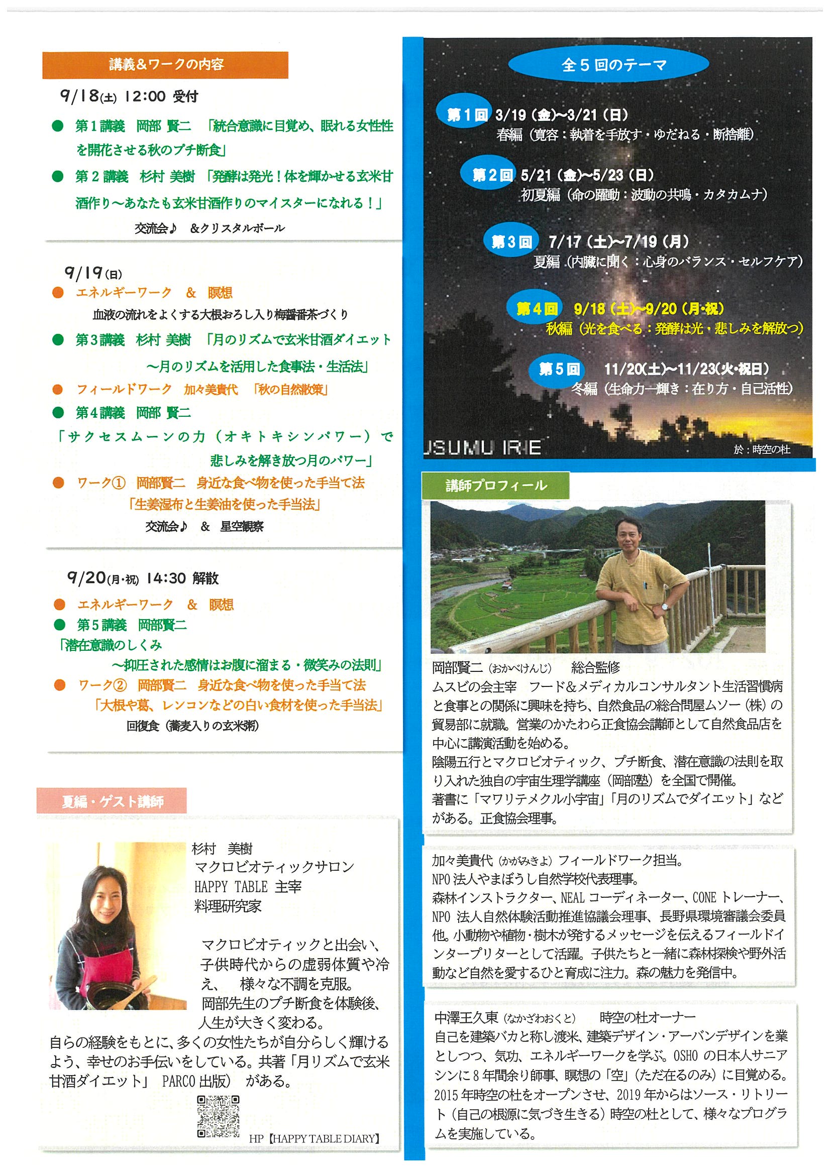 の観点から秋の季節に適した講義とワークを行います。