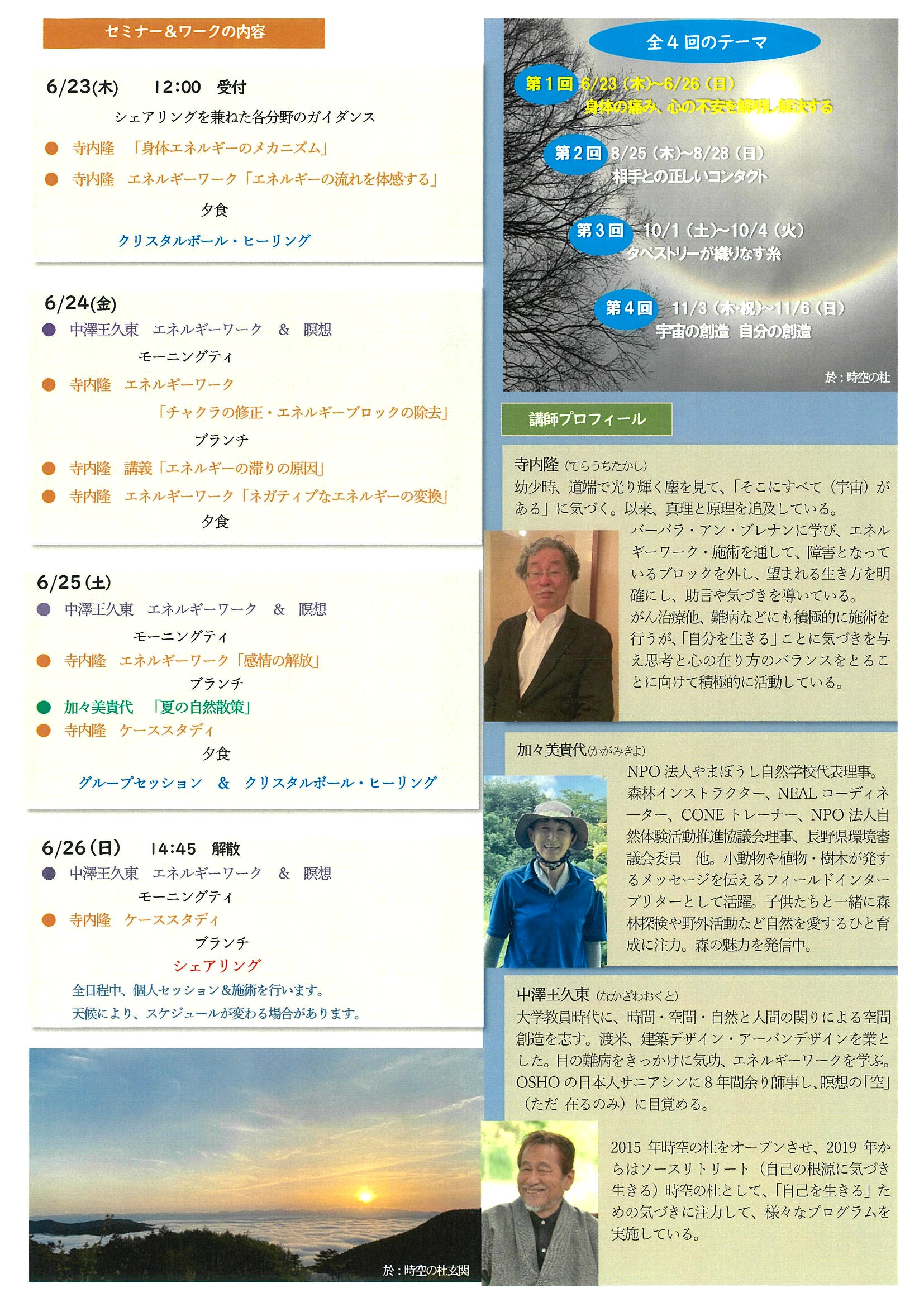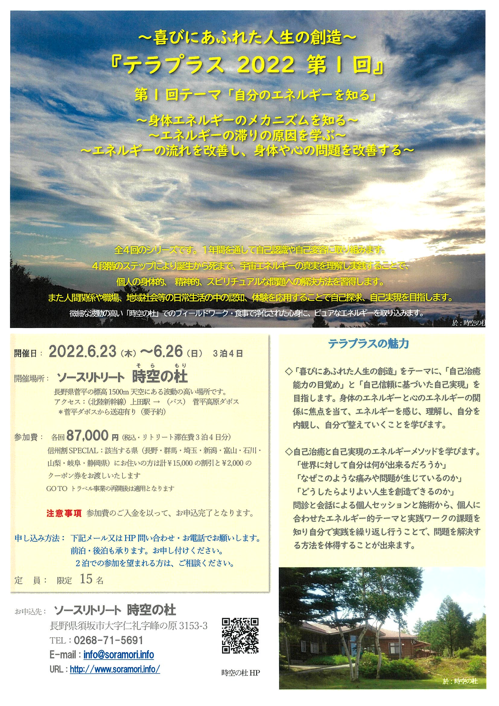 テラ・プラス 第1回では、自らのエネルギー・チャクラのメカニズムを学び