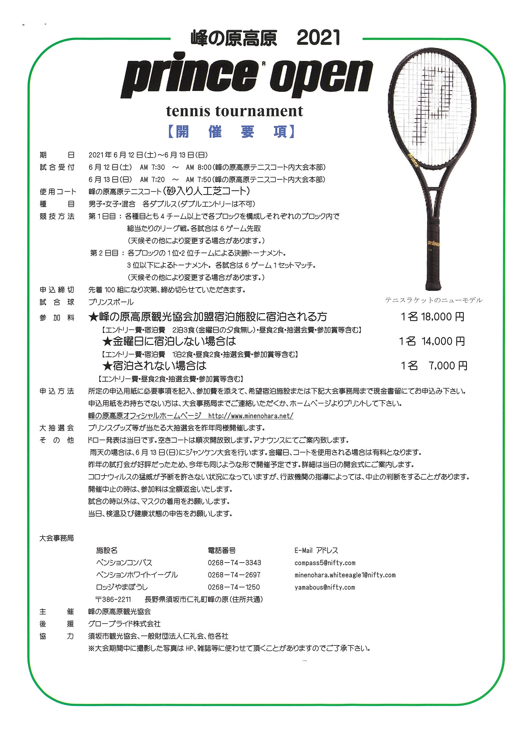 【開催のお知らせ】『峰の原高原2021 prince open テニストーナメント』のご案内