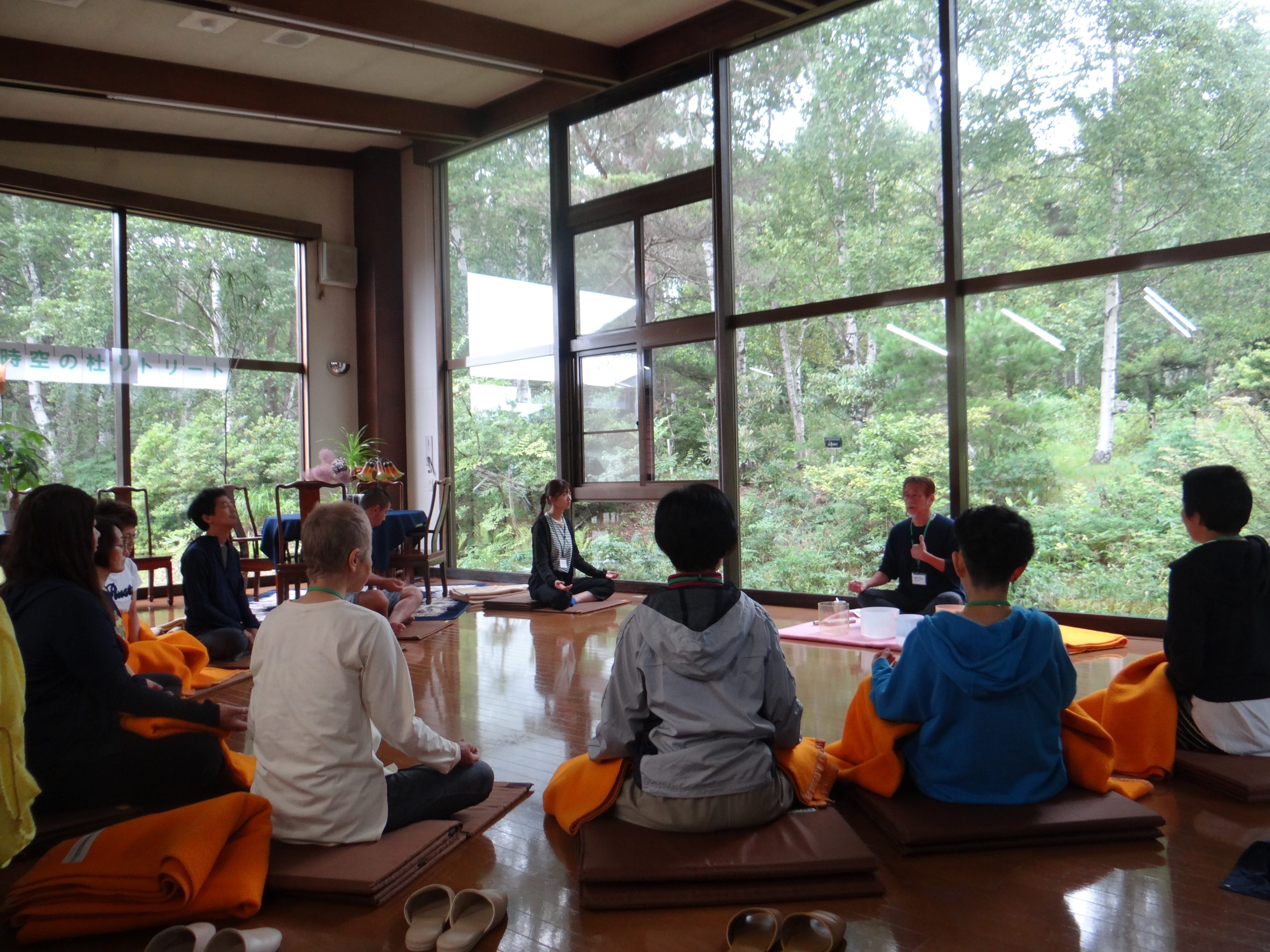 ・ダイニングホールで朝の瞑想を