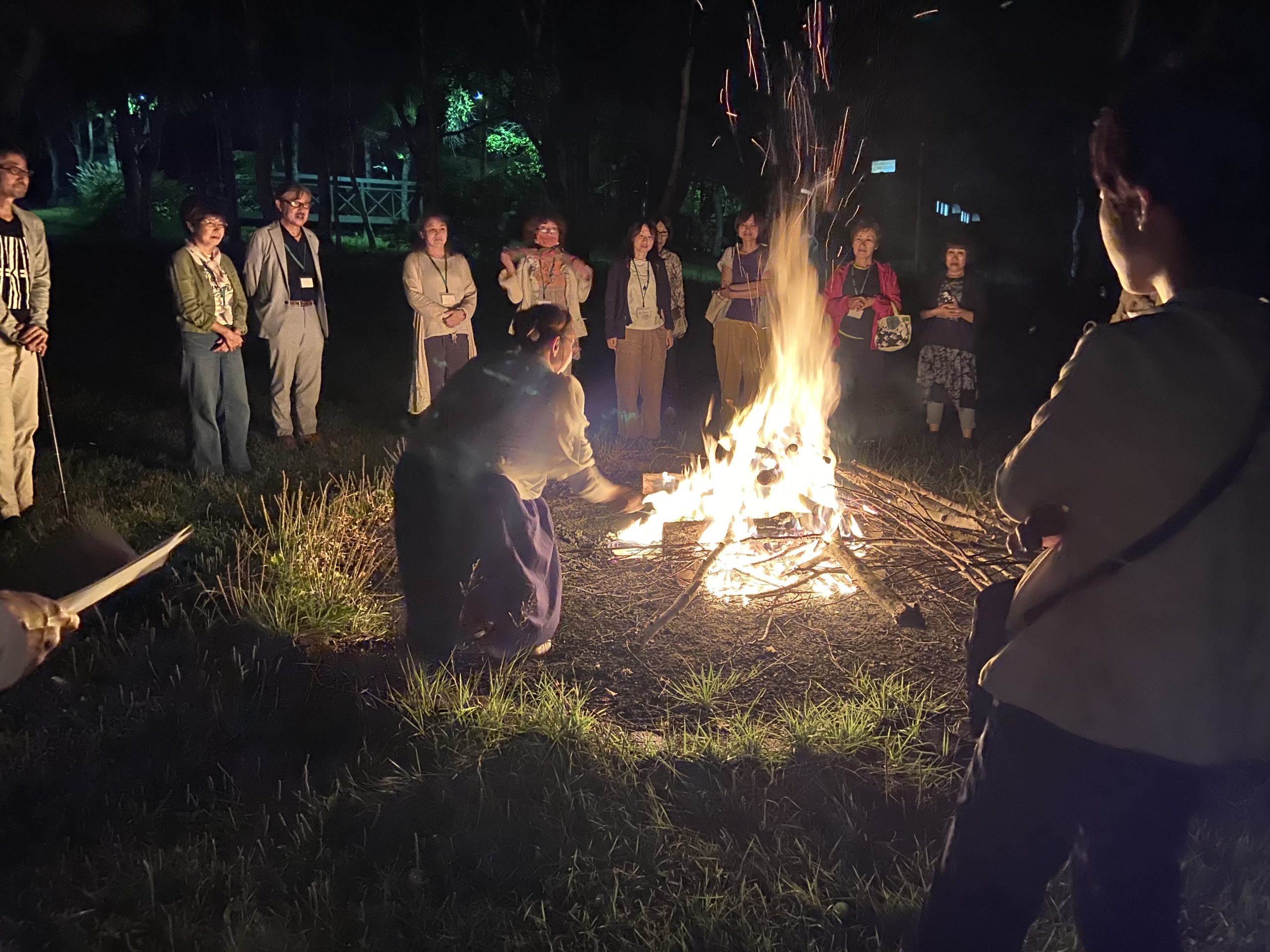 ・キャンプファイヤーを囲むといつの間にかドラムの音が、体が自然に動いて原始の時空に漂う