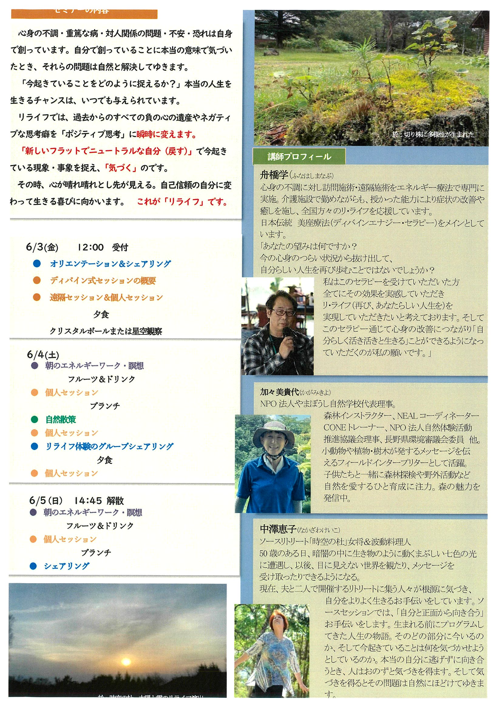 リライフは自分を調え、本当の気づきへのプロセスを体験するリトリートです!